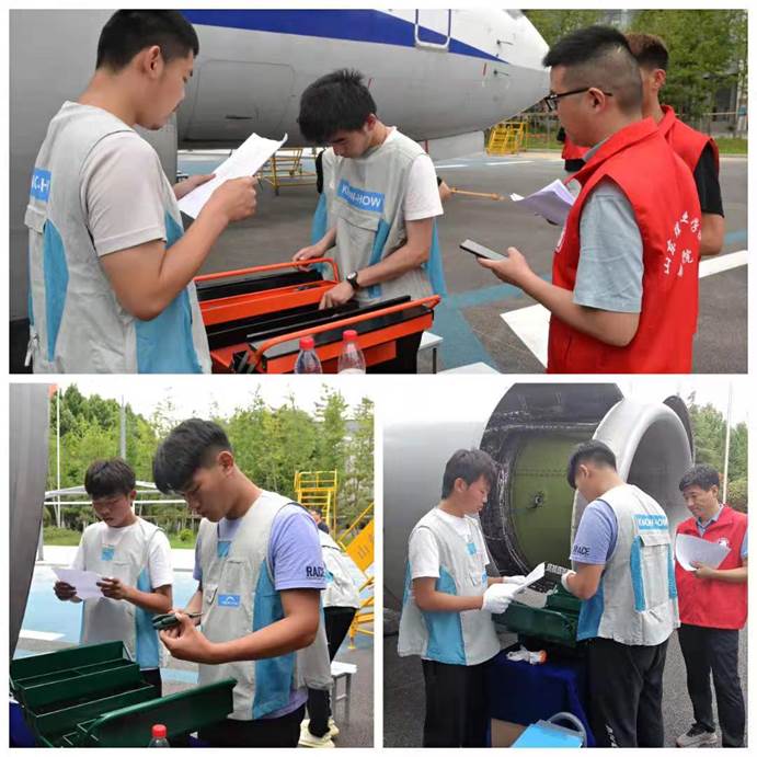 此次技能大赛分为三个赛项,旨在帮助学生了解新技术、新工艺、新材料、新设备在机务维修中的应用,考察学生对飞机、发动机基本维修技能、规范性操作能力以及航空维修职业操守水平,检验选手的团队协作、组织协调及安全质量意识水平。