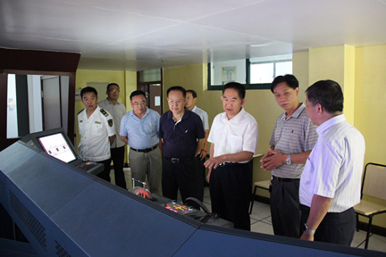 王局长一行实地查看了基地教育教学与实训设施,参观了中心航海模拟器、轮机模拟器实训室、“京杭运河”号实训船,并现场查看了20170502期大证理论考试情况。