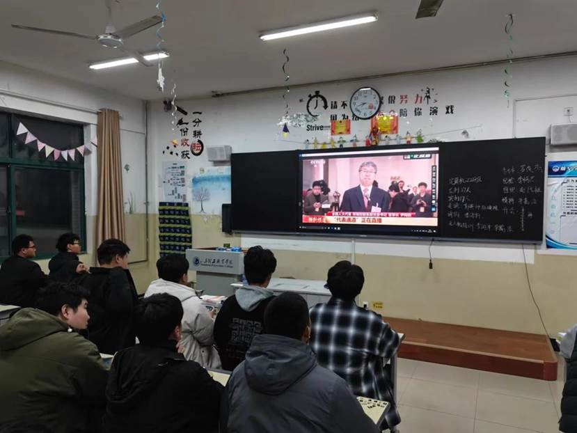聚焦盛会历史时刻,同上一堂思政大课。在观看过程中,航院学子怀着期待和喜悦之情,保持着良好的秩序,认真聆听着直播中各位代表的发言,展现出了大学生该有的文明素质。通过对会议的学习,同学们坚定了对党和国家的信心,也更加明确了自己在新时代的使命和责任。