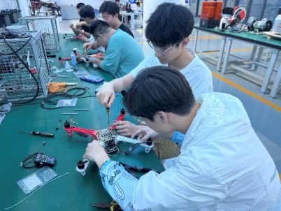 无人机装调检修赛项以工业级无人机真实应用场景为竞赛背景,以无人机装调工艺规范、故障诊断排除能力及精密操作技术为核心考察要点,综合无人机结构与原理理论知识考核、精密装机调试与典型故障检修相结合的竞赛内容。赛场上,选手们化身“技术尖兵”,凭借扎实的理论功底和沉稳细致的专业态度迎接挑战。面对待组装的精密部件,他们严格遵循工艺规范,熟练运用专业工具,精准焊接飞控线路,反复校准传感器参数,每一个步骤都一丝不苟、井然有序。在故障检修环节,选手们快速分析异常现象,精准定位故障模块,逻辑清晰地排除电路或程序隐患,争分夺秒恢复设备性能。在赛场上留下了一幕幕专注严谨的技艺展示,充分展现了新时代高技能人才追求卓越的“工匠”风采。