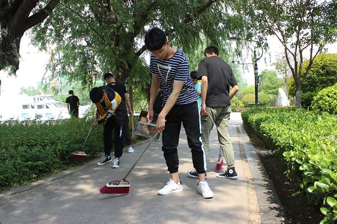 活动开始,同学们践行志愿者的使命,带着beats365官网新风貌,迈着热情矫健的步伐,手拿扫帚,畚斗,仔细认真地打扫着地上的垃圾和树叶,每扫一片树叶,就有人迅速拿着畚斗把垃圾装进垃圾桶,同学们三三两两组合在一起,配合默契,每个人的脸上都洋溢着志愿者无私奉献的笑容。在炎热的天气下,同学们仍然充满激情,充分展示志愿者服务不怕苦,不怕累,不怕脏的精神,也表达了学生对劳动的热爱。