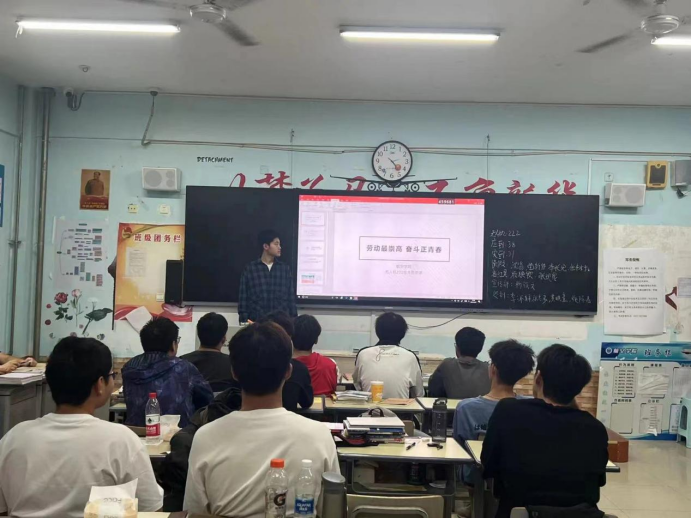 在各班团支书的组织下,通过视频、PPT等形式表达了对革命先烈和英雄等模范人物的追思、敬仰和学习之情以及讲述相关劳动劳模事迹向同学们传达劳动最崇高这一主题团课精神。