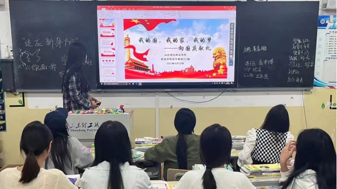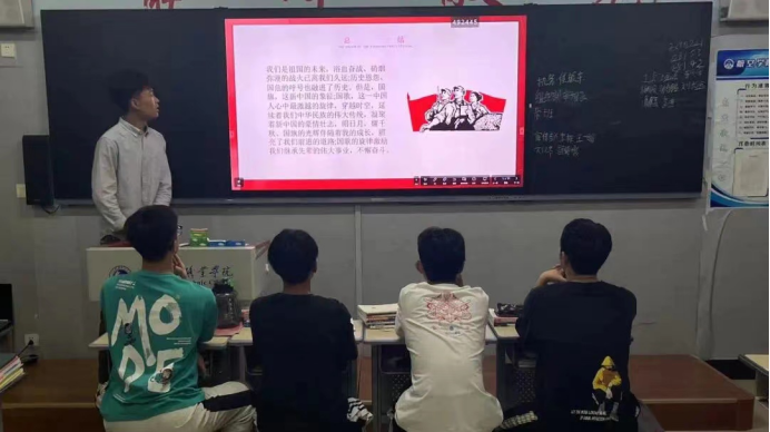 “以青春之名,书写清澈挚爱,以心中红星,献礼盛世中华!”在团课上,各班采用观看红色爱国教育影片,教唱红色歌曲,观看ppt等多种形式庆祝伟大祖国的华诞。同学们群情激昂,积极展开讨论,立下豪情壮志。该主题结束后,各班同时开展节能环保的主题教育,倡导低碳生活,提高环保意识,维护共同的校园环境。