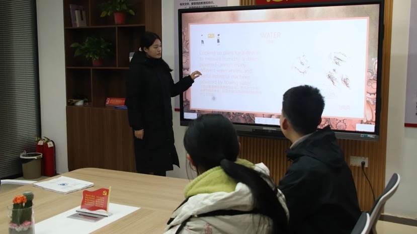 邢文舒老师作为英语协会指导老师之一,用自己独特的方式与同学们进行了一场充满乐趣的英语课外知识交流会。邢文舒老师指出:要想学好英语,说好英语,首先要有兴趣,兴趣是我们最好的老师,就像学习中文一样,每个人都有自己不同的学习方法,要找到属于自己的学习方法才是最好的。如果把语言学习比做一幅画的话,点线面就是构成一幅画面的关键点。利用“趣味英语”交流的形式,从另一方面提高了同学们对英语学习的积极性,打开了学习语言知识的新方式。在活动中,邢文舒老师先讲述了自己感兴趣的英语人物,与同学们进行分享,再鼓励同学们上台一一分享自己喜欢的英语知识,同学们积极分享,场面非常温馨,大家在一起津津乐道。