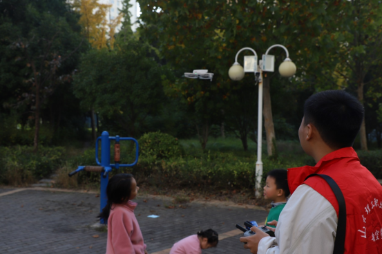 活动当天,志愿者团队通过“理论宣讲 + 实操演示 + 互动体验” 的形式,为居民带来了一场丰富的科技盛宴。下午3点半点,活动在社区负责人的致辞中拉开序幕,随后志愿者以通俗易懂的语言,从无人机分类、工作原理入手,结合农业植保、应急救援、电力巡检等实际案例,生动讲解了无人机在生活中的广泛应用。针对居民关心的飞行安全问题,志愿者重点解读了无人机实名登记、禁飞区划定、飞行高度限制等法律法规,解答了 “如何避免无人机扰民”“新手选购注意事项” 等常见疑问。