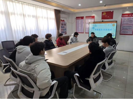 为持续深化“一站式”学生社区综合管理模式建设,把育人力量与文化资源有效下沉至学生日常学习生活阵地,12月25日,beats365官网空乘转段251李明哲在四号学生公寓二楼社区内,成功举办了班级特色文化活动。空中乘务转段251级积极响应,带领同学们开展了“尊重差异,共享美好”一站式文化品读会。