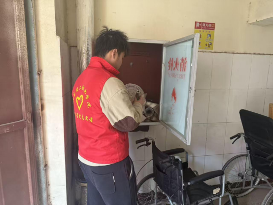 另一部分志愿者们组成排查小组,按照“全覆盖、无死角、零遗漏”的原则,对养老院的消防栓、灭火器、应急照明灯、疏散指示标志等关键消防设备设施展开全面细致的排查。志愿者们还向养老院工作人员讲解了消防设备的正确使用方法、日常维护技巧以及火灾初期应急处置要点,提升了工作人员的消防安全实操能力。