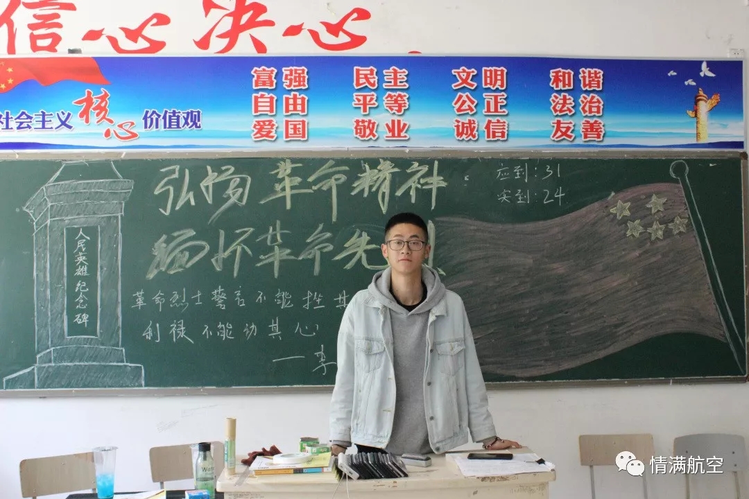 为了深切缅怀革命先烈们的丰功伟绩,弘扬民族精神,让同学们能了解革命烈士的无私精神,习得革命光荣传统,深入贯彻学习革命先烈的崇高精神,增强同学们的社会责任感和历史使命感。航空学校于2019年4月3日下午举行以“弘扬革命精神,缅怀革命先烈”为主题的团课。