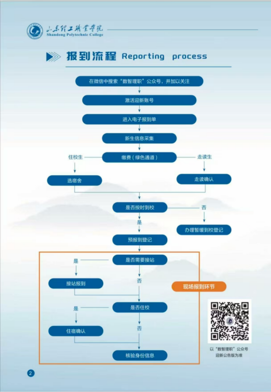 新生入学报到前,请关注“数智理职”微信公众号,“数智理职”微信公众号将于8月25号9时开通迎新服务,届时将全程提供报到接站、信息填报、缴费及选宿等一站式服务。因特殊情况不能按时报到者,需提前向被录取二级学院请假(请假时间不超过2周),逾期二周不报到者,按自动放弃入学资格处理,各二级学院电话详见《致新生家长的一封信》(招生与就业创业处电话:0537-3617788 3617789 传真:0537-3617444)。
