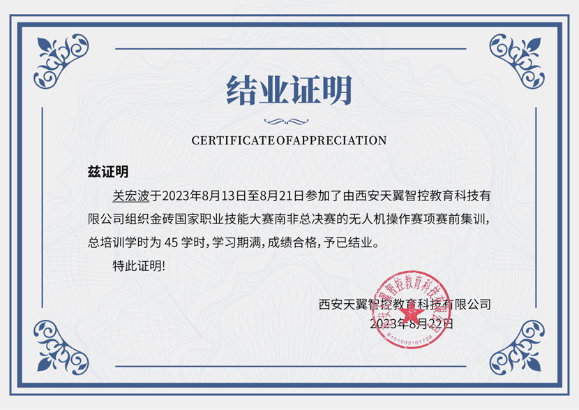 2. 国家队集训结业证明