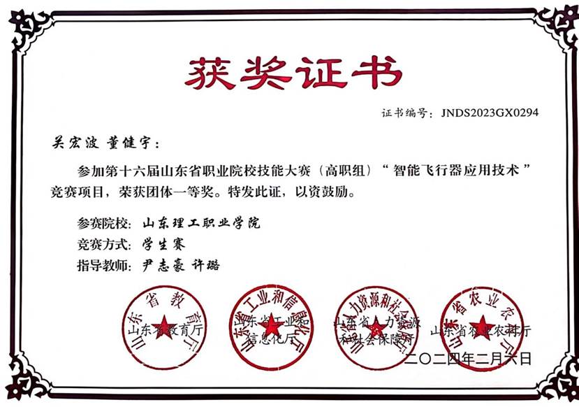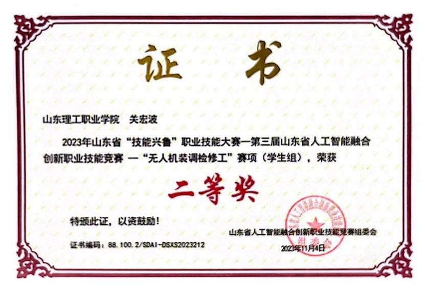 3. 技能兴鲁职业技能大赛二等奖