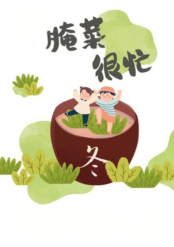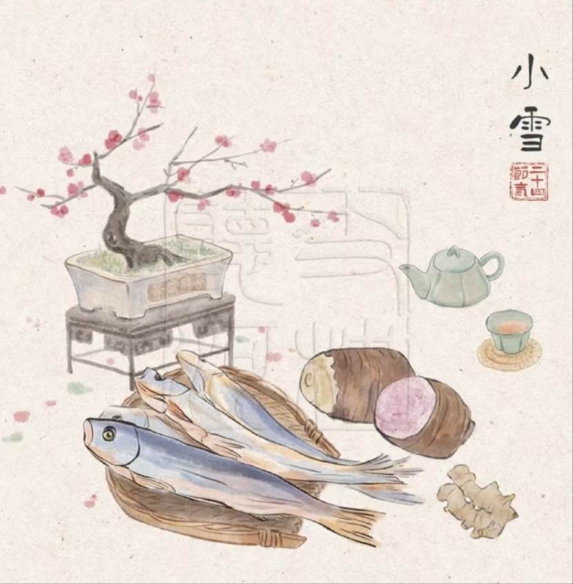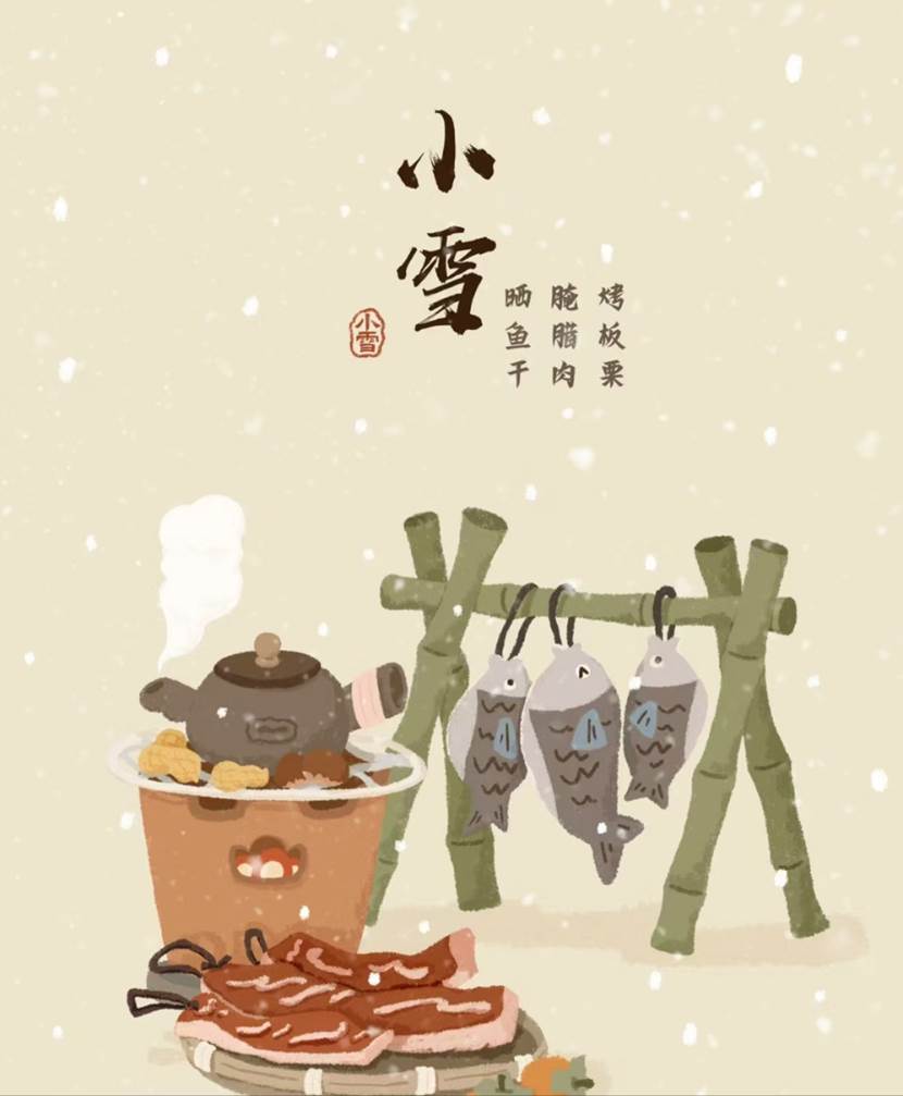 俗语云:“小雪腌菜,大雪腌肉。”小雪节气的习俗包括腌咸菜、品尝糍粑、晒鱼干、吃刨汤、酿小雪酒等。小雪腌菜,主要是北方腌雪里蕻,渍酸菜。