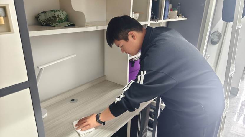 宿舍卫生绝非仅仅局限于表面的干净整洁,它更是一种积极生活态度的彰显。整洁的宿舍环境不仅能让同学们心情愉悦,为学习与休息创造更加舒适的条件,还能有效培养学生的责任感与自律能力,增强团队合作意识与劳动观念,充分展现新时代青年的良好精神风貌。让我们携手同行,“青”风筑梦,“洁”尽全力,为大家营造一个温馨舒适的生活环境。