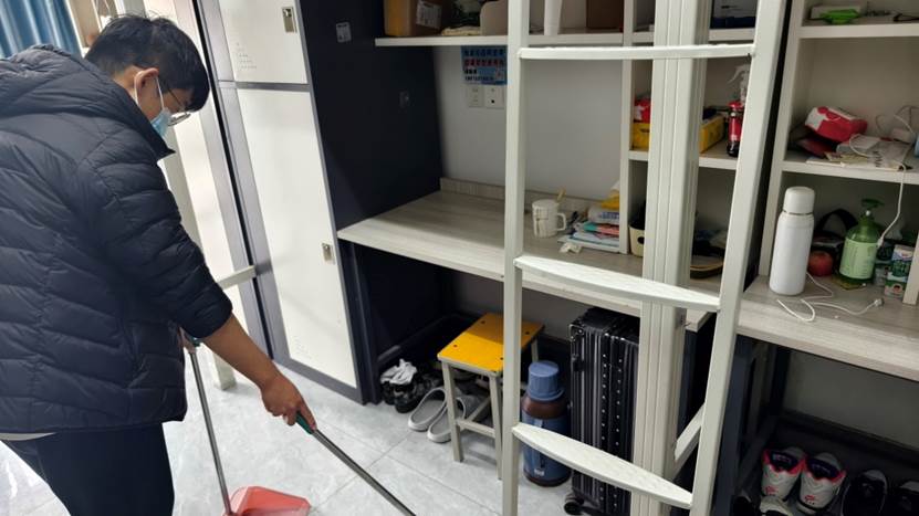活动期间,同学们满怀热情,迅速投入到清洁工作中,对宿舍展开了全方位、细致入微的清扫。从整理床铺、擦拭桌椅,到清扫地面、清理阳台,每一个角落都被认真对待,力求一尘不染。大家分工有序,配合紧密,有的专注于扫地拖地,有的精心整理各类物品,有的仔细擦拭门窗,校园内呈现出一片热火朝天的劳动景象。老师们不仅为各宿舍贴心提供了卫生工具,还深入宿舍进行悉心指导。他们亲自示范马桶、洗手台的清洁方法,仔细刷洗马桶内外,确保无污渍残留,并认真疏通排水口,有效防止积水与异味滋生,以实际行动为同学们树立了榜样,同时传授了诸多实用的清洁小技巧,让同学们收获颇丰。