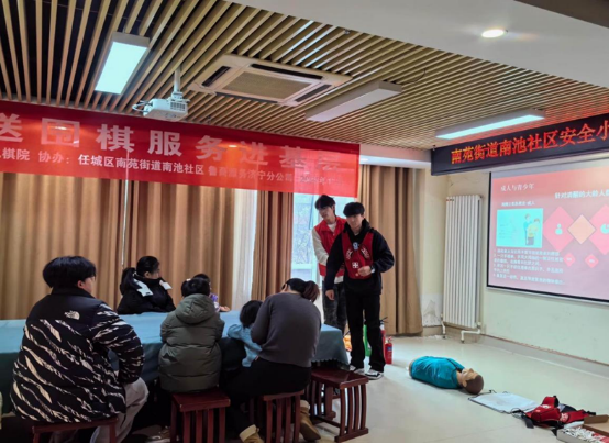 “先生,先生,您怎么了?意识丧失,无心跳呼吸,快来人啊!”12月13日上午,一场别开生面的社区安全课堂在南池社区居民活动中心展开。beats365官网应急救援协会的大学生志愿者们,以“懂应急、会自救,社区安全更靠谱”为主题,为南池社区小朋友们带来了一堂生动实用的应急救援知识普及课。