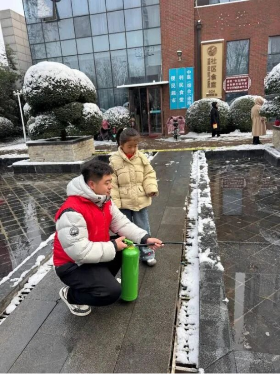 ▲志愿者进行灭火器讲解
