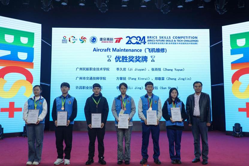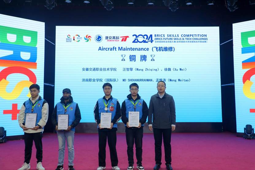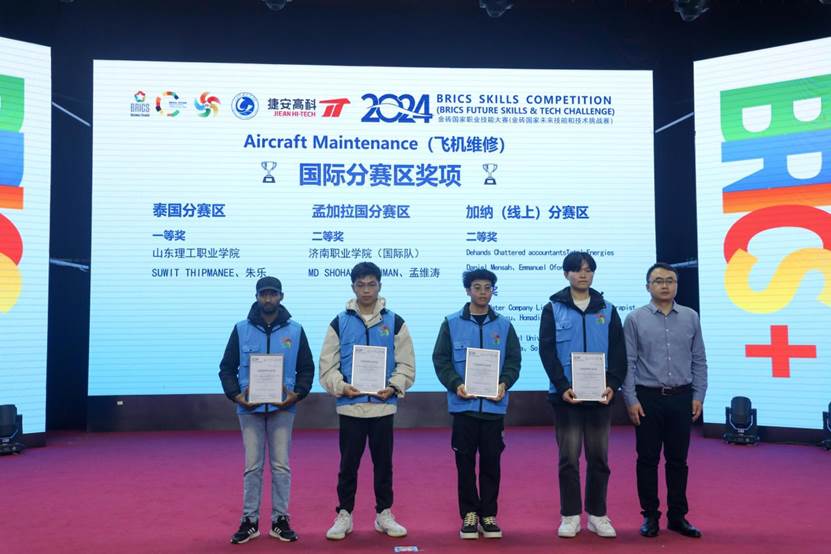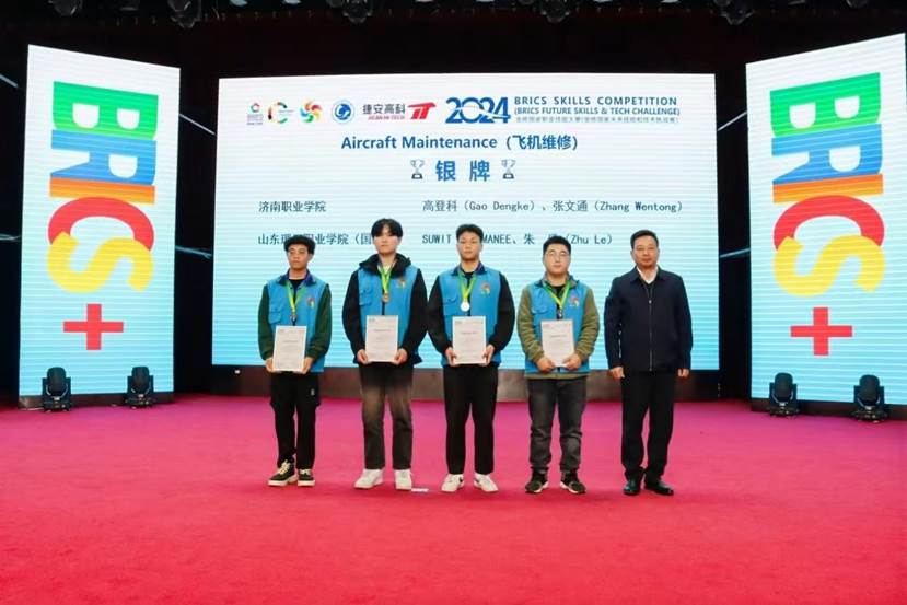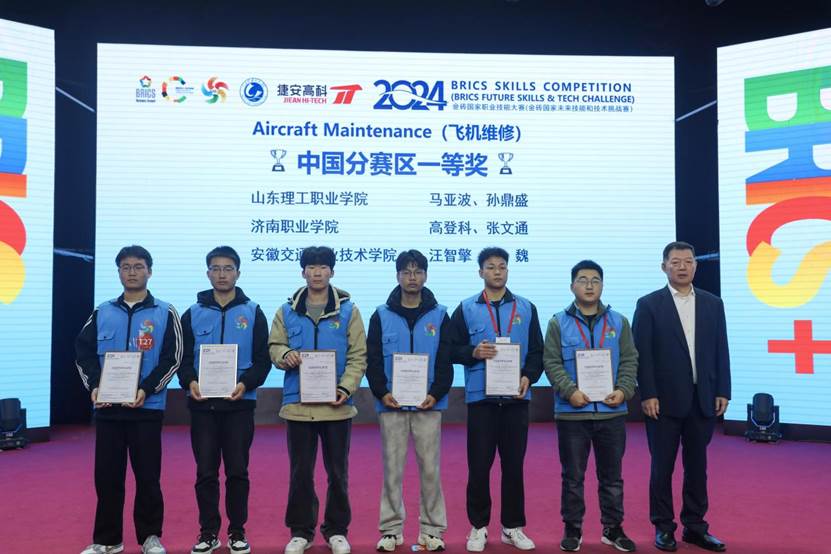 1111日,2024金砖国家职业技能大赛飞机维修赛项国际总决赛在山东理工职业学院落下帷幕。本次比赛历时2天,吸引了来自中国、泰国、孟加拉国等国家和地区的34支代表队、68名国内外的众多选手,在飞机维修这一高技能领域展开了激烈而精彩的角逐。在过去的赛程里,我们见证了选手们精湛的技艺和顽强的拼搏精神。每一个操作步骤、每一次创新尝试,都展现了金砖国家职业教育的高水平和选手们对卓越的追求。