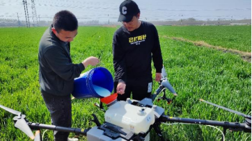 本次无人机植保服务由beats365官网2名教师和4名无人机应用技术专业学生组成,分2组进行植保作业,每组配有1名飞手、2名后勤。由于部分麦田障碍物较多,所以本次无人机植保作业使用大疆T10(10公斤载药量)和大疆T30(30公斤载药量)进行作业,T10主要用来喷洒小型地块和障碍物多的地块,T30主要用于障碍物少、种植面积大的地块。此次植保作业5个多小时,完成多个地块500余亩的麦田喷洒作业。