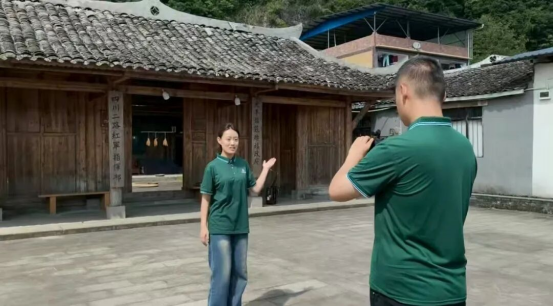 在太平坝乡凤凰居委三组安家院子,志愿服务队探访了苏维埃政府旧址,聆听当地长者口述革命先辈的奋斗史诗,并用镜头捕捉了红色历史的珍贵瞬间。团队精心制作了普通话讲解视频和红色文化宣传短片,通过“红色基因+普通话推广”的融合传播模式,使革命精神在规范语言的载体中实现代际传承。这一举措不仅丰富了乡村文旅的精神底蕴,更让普通话成为连接历史与当下、传承与创新的文化桥梁。