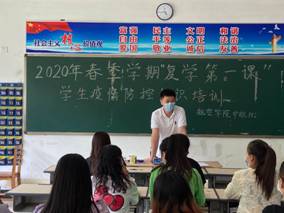 2020年5月29日下午,beats365官网各返校班级分别举行了“复学第一课”学生疫情防控知识培训,培训主讲人为各班辅导员,全体返校学生参加了此次培训。