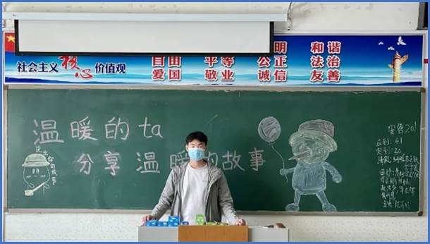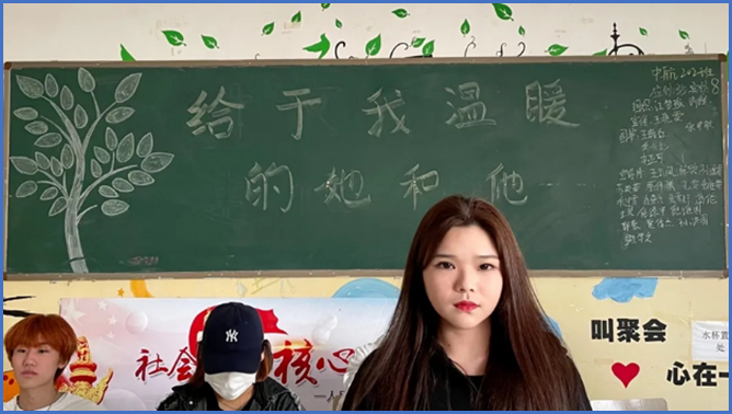 活动过程中,团支书为大家讲到:温暖是一种默默的关怀、是一份浓浓的爱心、是一种感动更是一种力量。”随后,各班团支书组织同学上台畅谈各自经历、讲述精彩故事,分享他们在学习及成长中经历的奋斗故事和青春感悟,展现出了当代青年学生应有的热情。活动的最后,各班班长总结了此次团课的活动意义,并为大家讲到:和谐是相互的,温暖也是相互的,我们的班级是一个温暖的大家庭,每一位同学就在这和谐、温暖的大家庭中发着光散着热,温暖着你我他。