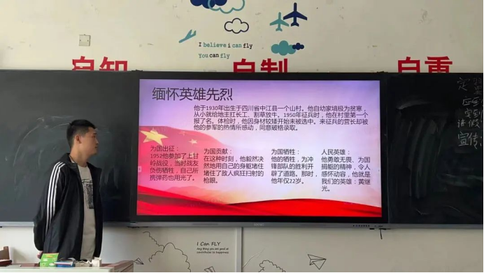 在团课中团支书指出,我们新时代的青年们应怀着一颗感恩与真诚的心向英雄先烈们学习,没有各位先烈的付出就没有我们如今阖家幸福的生活,我们要感激他们。